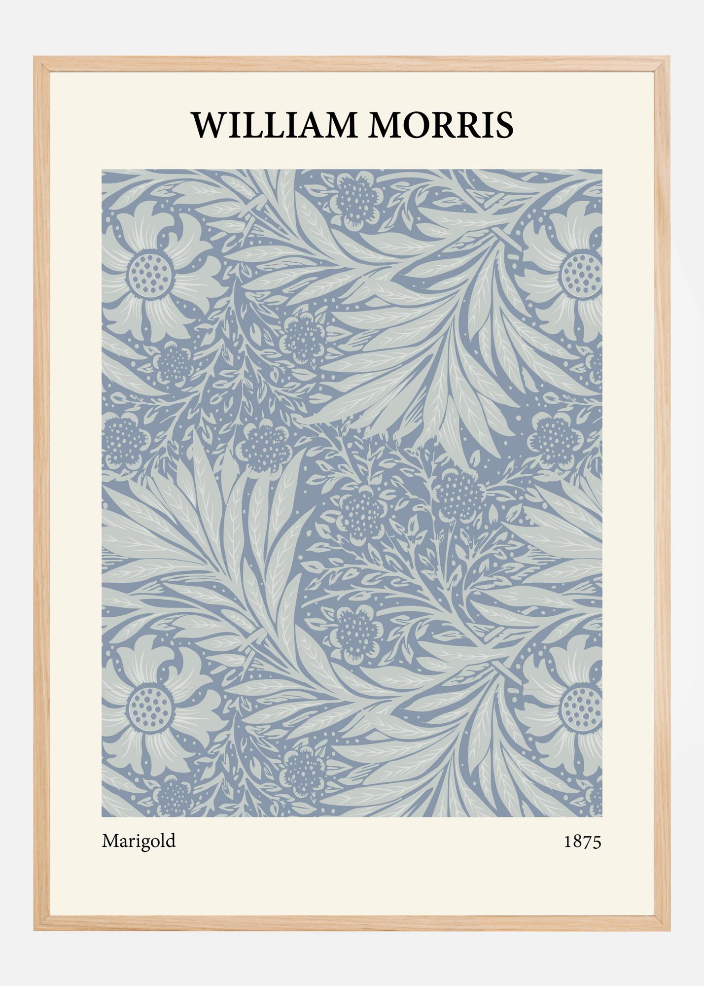 Ta čudovito oblikovan plakat Williama Morrisa prikazuje vzorec "Marigold" iz leta 1875 v očarljivi modri barvni paleti. Detajli in naraven stil vzorca pričata o Morrisovi sposobnosti ustvarjanja umetniških del, ki slavijo in odsevajo lepoto narave. Ta dizajn predstavlja obrtniško spretnost viktorijanske dobe in cenjenje ročno izdelanih predmetov v gibanje Arts and Crafts.