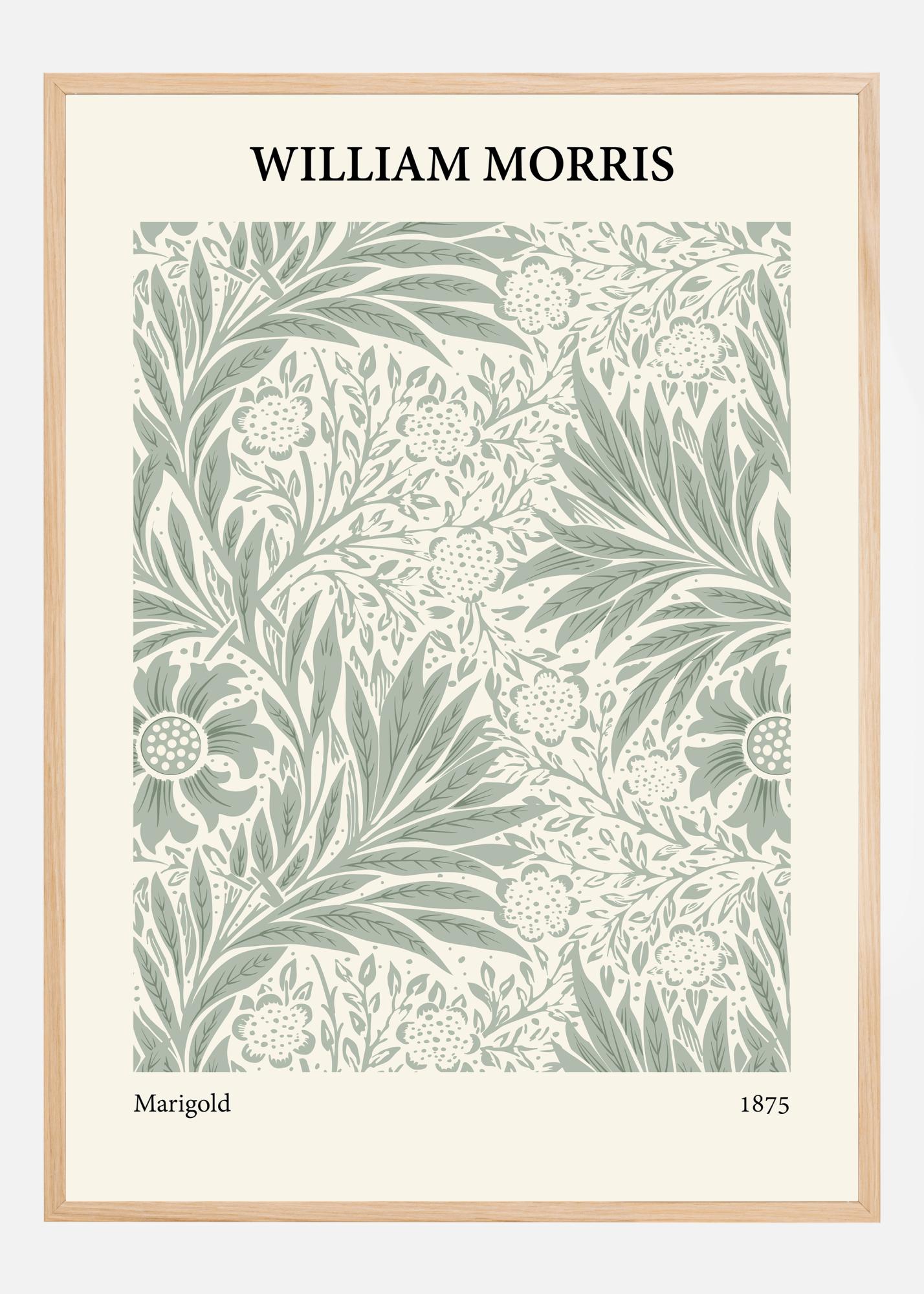 Ta edinstven plakat prikazuje dizajn "Marigold" Williama Morrisa iz leta 1875, ki prikazuje bogastvo motivov, navdihnjenih z naravo, vse upodobljeno z nezamenljivo spretnostjo in očesom za podrobnosti. Živahna, a hkrati subtilna zelena barvna paleta je značilna za Morrisove dizajne, in vdihne življenje vsakemu listu in cvetnemu listu, zaradi česar je umetniško delo brezčasna klasika notranje opreme.