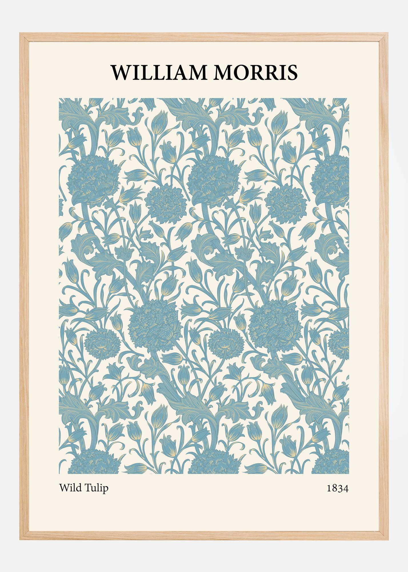 Ta ekskluzivna William Morris plakat, "Divja tulipana", prikazuje ikonični slog umetnika in ljubezen do narave. S prefinjenim vzorcem tulipanov v odtenkih hladne modre in zelene, na kremni podlagi, ta tisk ponovno ustvarja bogato teksturo in podrobnost, po kateri je Morris znan. Njena bogata in živahna zasnova ustvarja osrednji poudarek v vsakem notranjem prostoru ter ponuja brezčasno lepoto, značilno za Morrisova dela.
