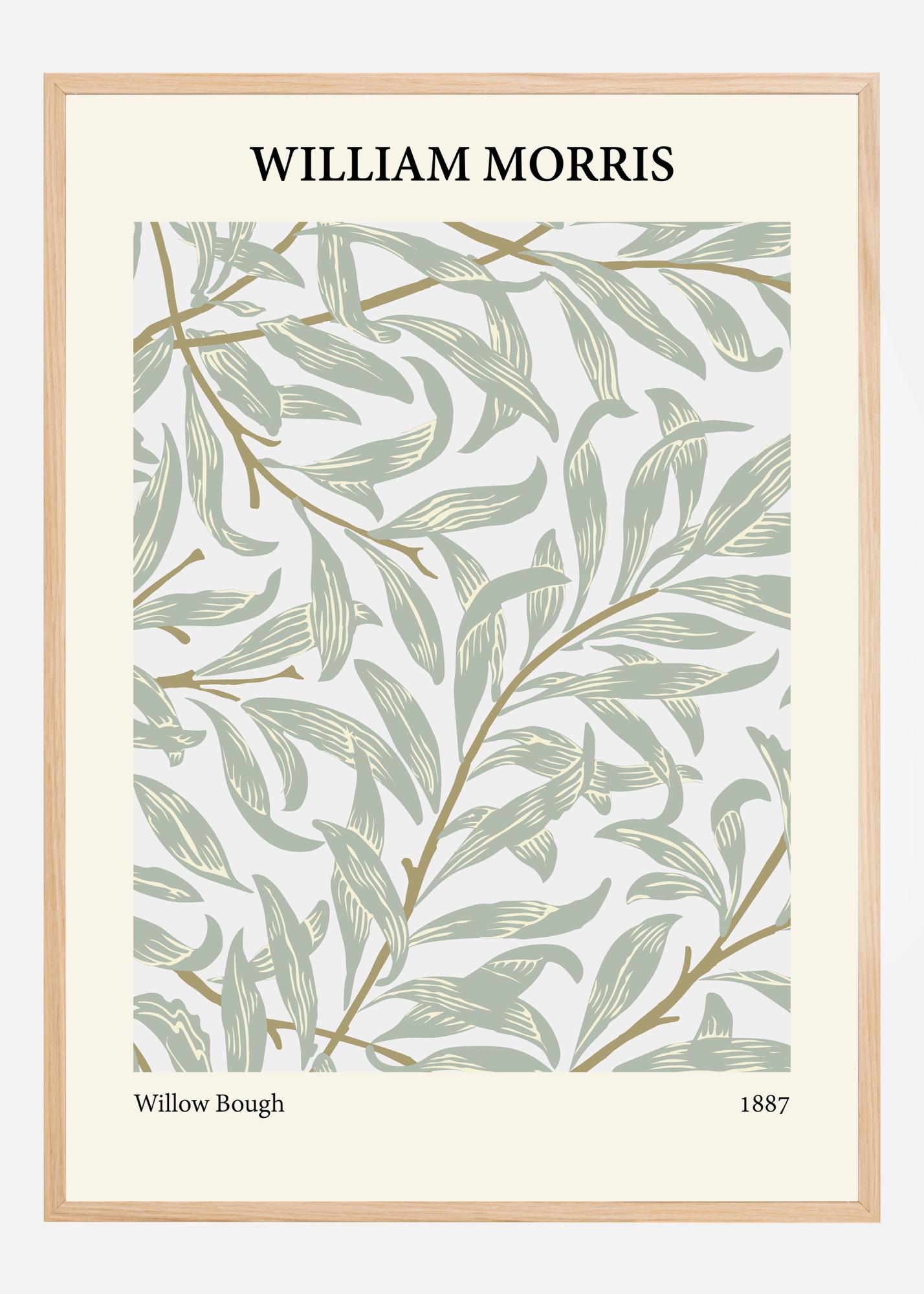 Ta svetla in sveža plakat prikazuje dizajn Williama Morrisa "Willow Bough" iz leta 1887, ki ga zaznamujejo vijugaste veje in vrbovi listi v tekočem in naravnem vzorcu. Umirjena zelena barvna shema poudarja podrobne liste in daje občutek mirnega vrta ter povezave z naravo, kar je bilo osrednjega pomena v Morrisovem delu in v gibanju Umetnosti in obrti kot celoti.