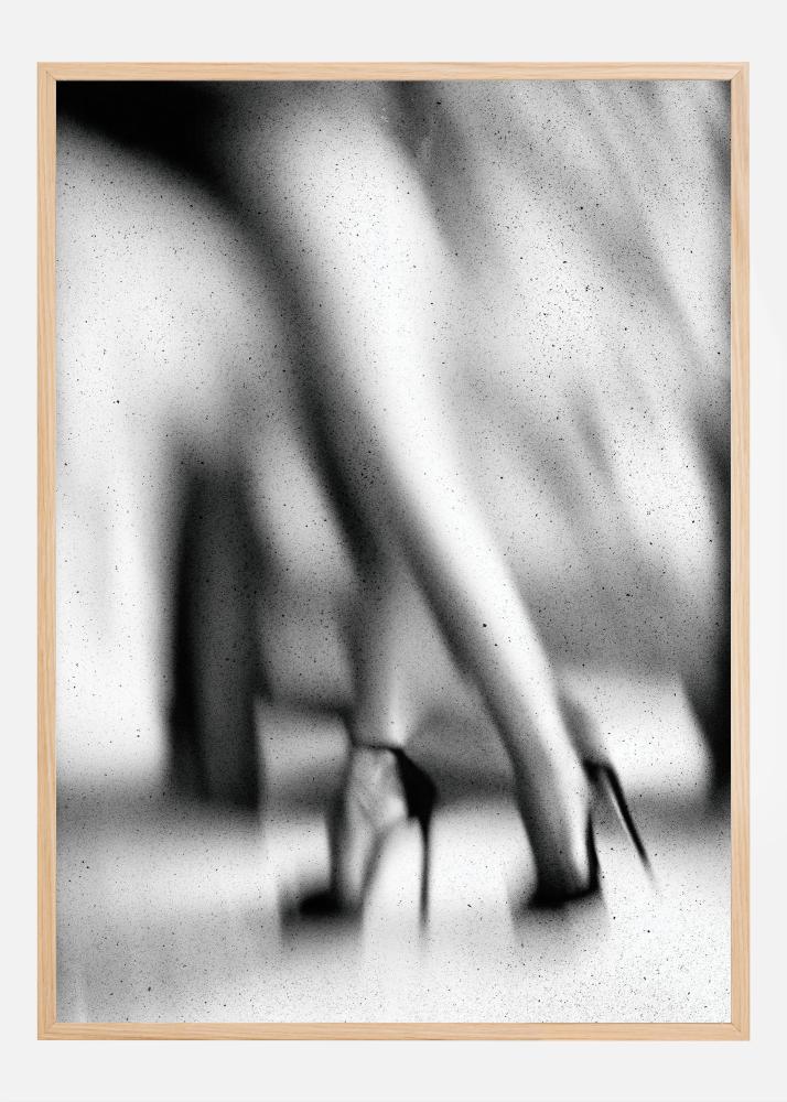Ta umetniški plakat se igra z zameglitvijo in kontrastom, da ustvari občutek gibanja in abstrakcije. Upodablja par nog v čevljih z visoko peto v atmosferski in skoraj zamegljeni ostrini, kar daje delu eteričen in dinamičen občutek. Monokromatska barvna lestvica plakata vzbuja občutek tako brezčasnosti kot modernosti.